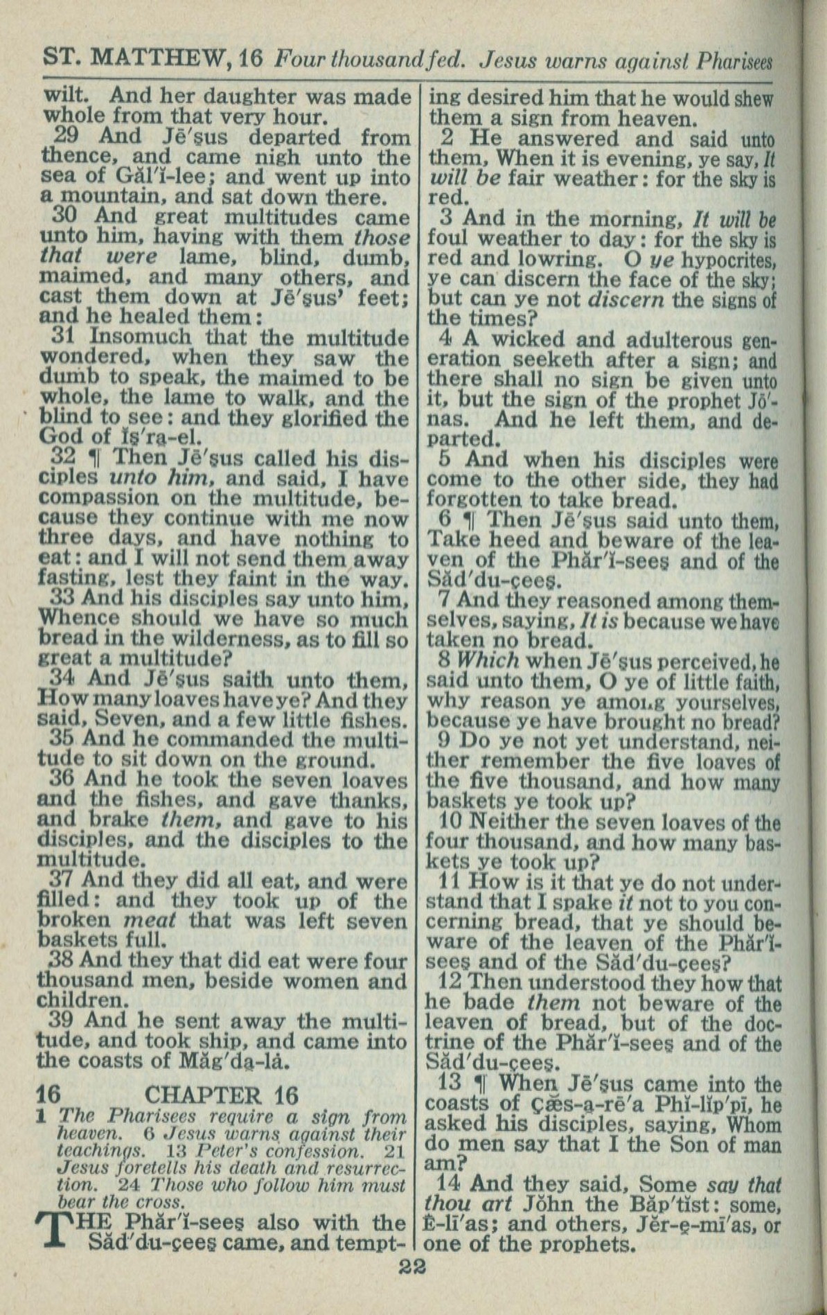 1946年King James Version 马太福音 15 章 29 节到 16 章 14 节