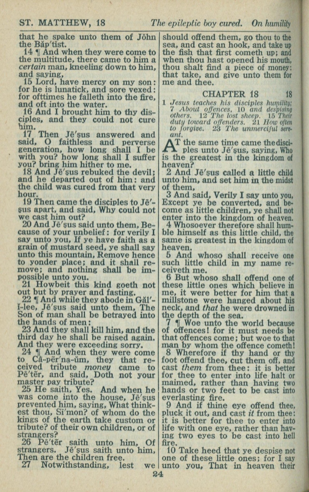1946年King James Version 马太福音 17 章 14 节到 18 章 10 节