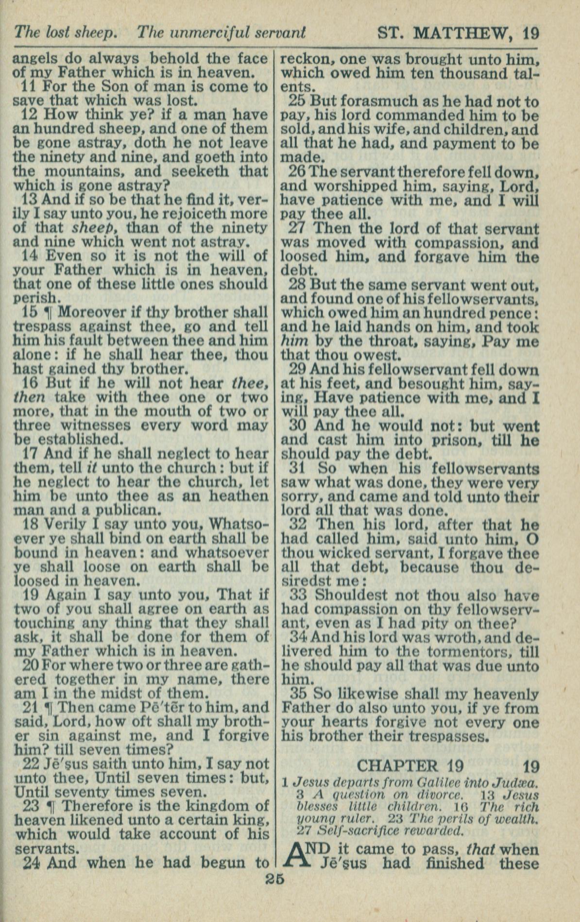 1946年King James Version 马太福音 18 章 11 节到 19 章 1 节