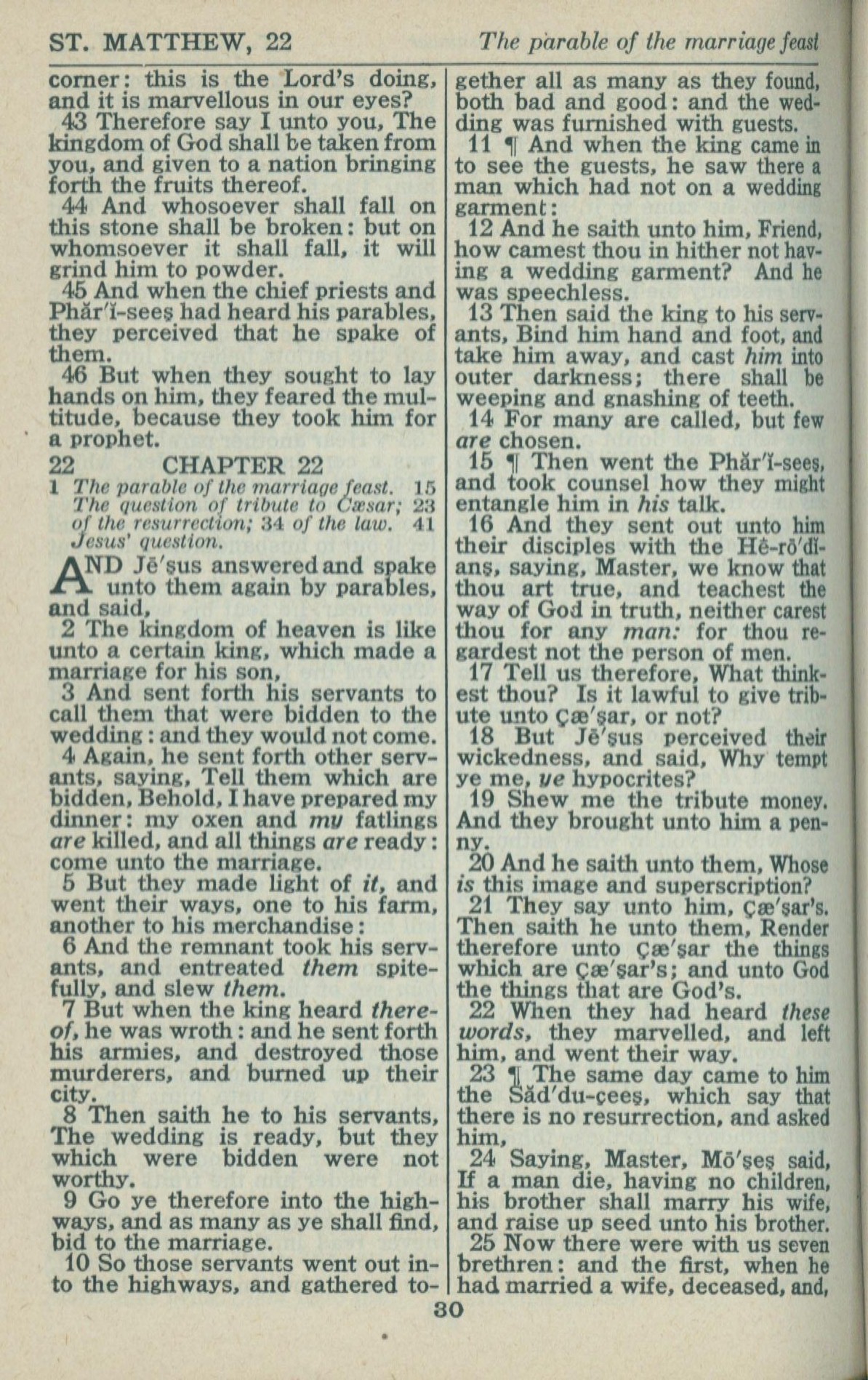 1946年King James Version 马太福音 21 章 43 节到 22 章 25 节