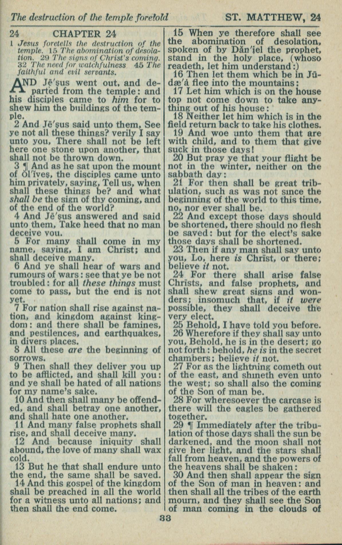 1946年King James Version 马太福音 24 章 1 节到 24 章 30 节