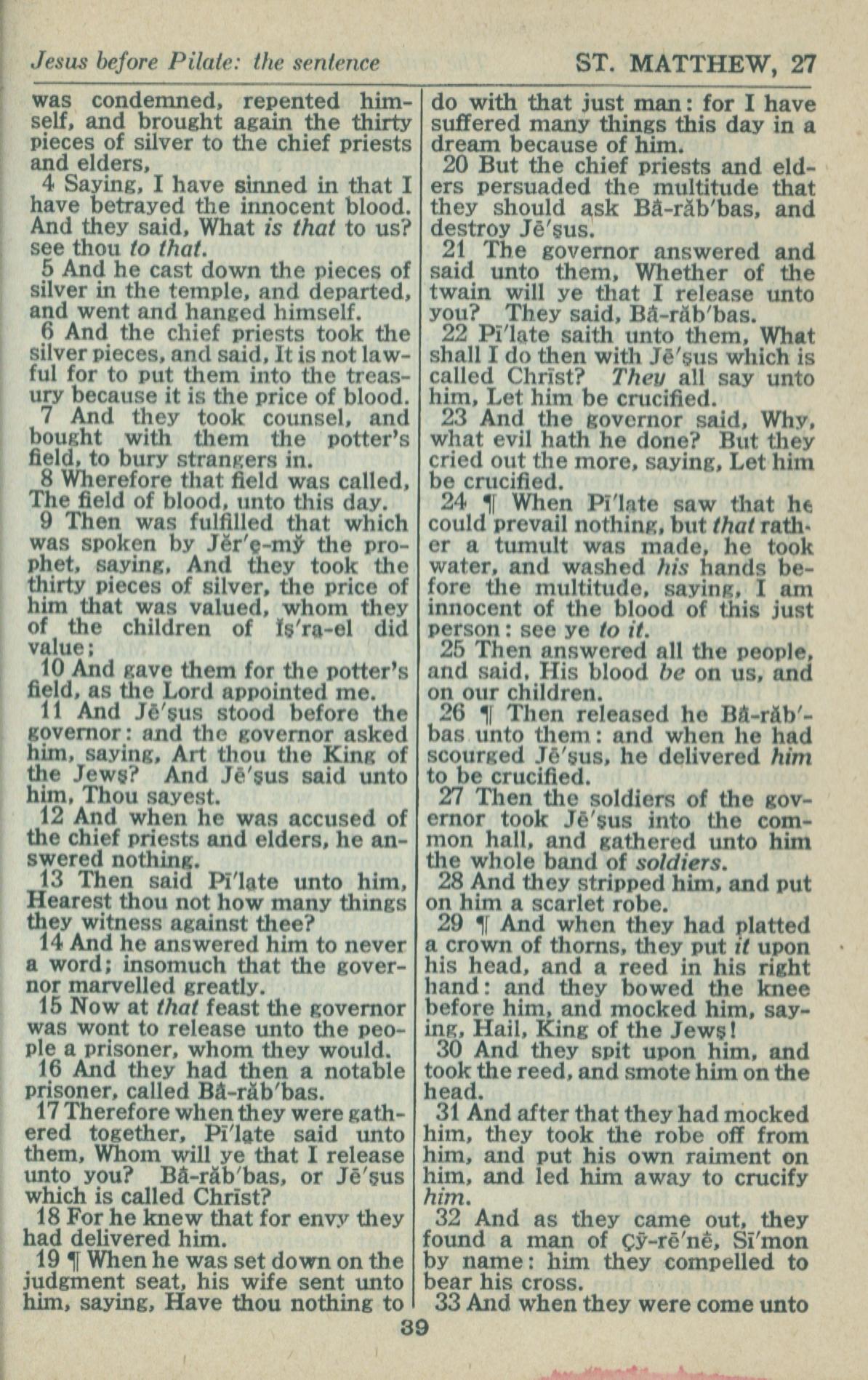 1946年King James Version 马太福音 27 章 4 节到 27 章 33 节