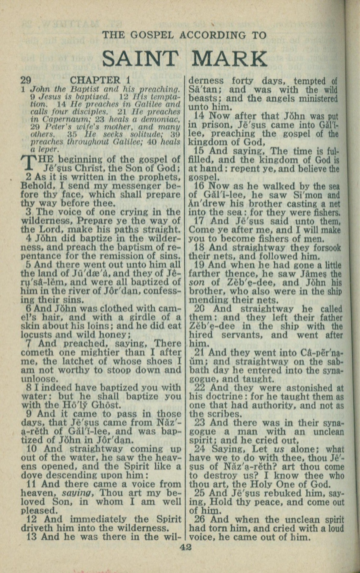 1946年King James Version 马可福音 1 章 1 节到 1 章 26 节