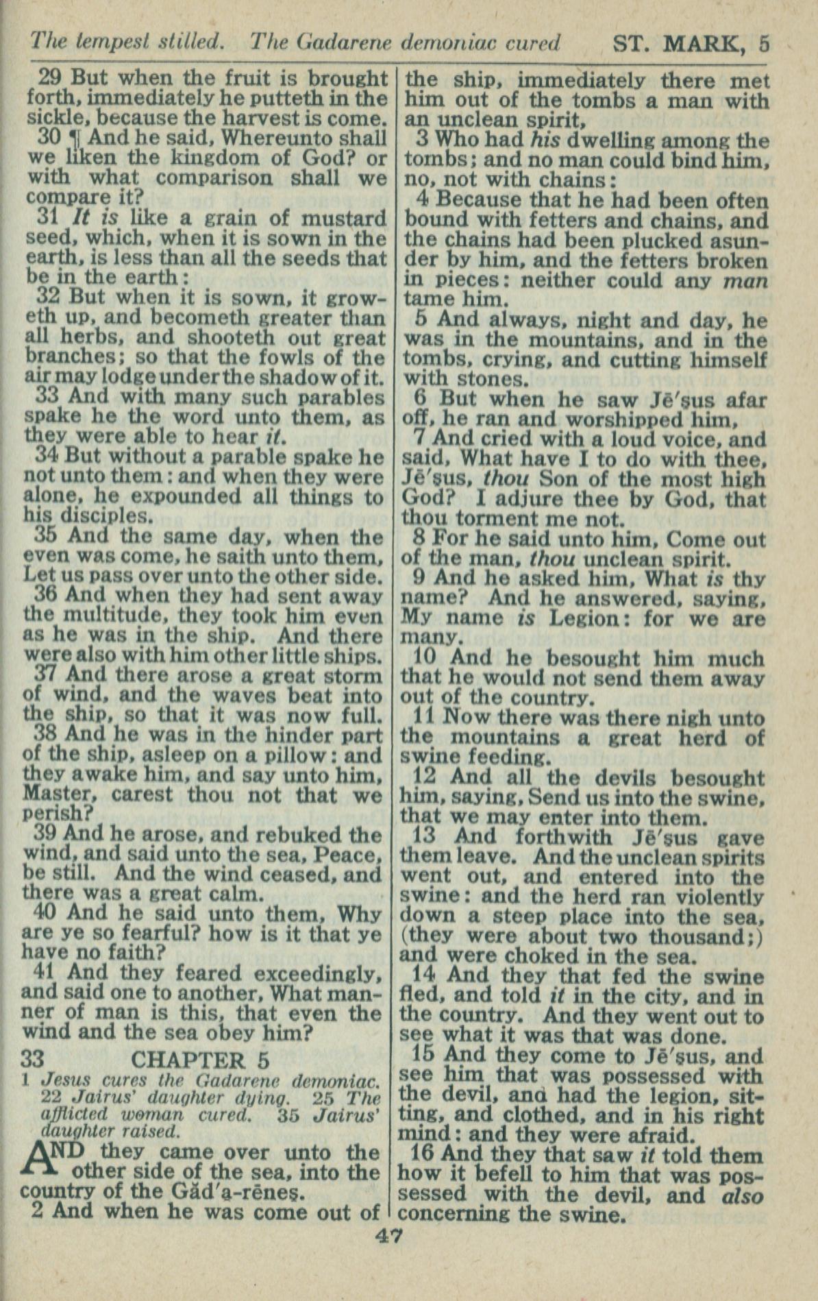 1946年King James Version 马可福音 4 章 29 节到 5 章 16 节