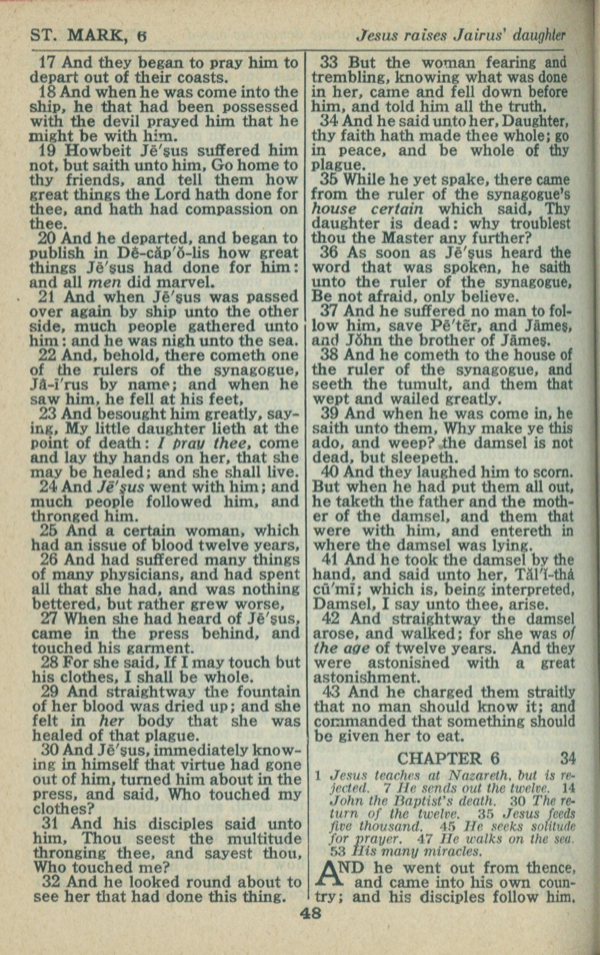 1946年King James Version 马可福音 5 章 17 节到 6 章 1 节