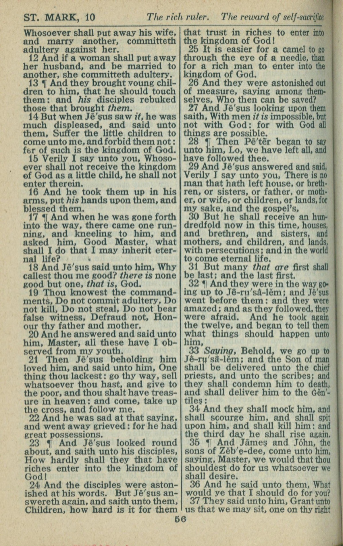 1946年King James Version 马可福音 10 章 12 节到 10 章 37 节