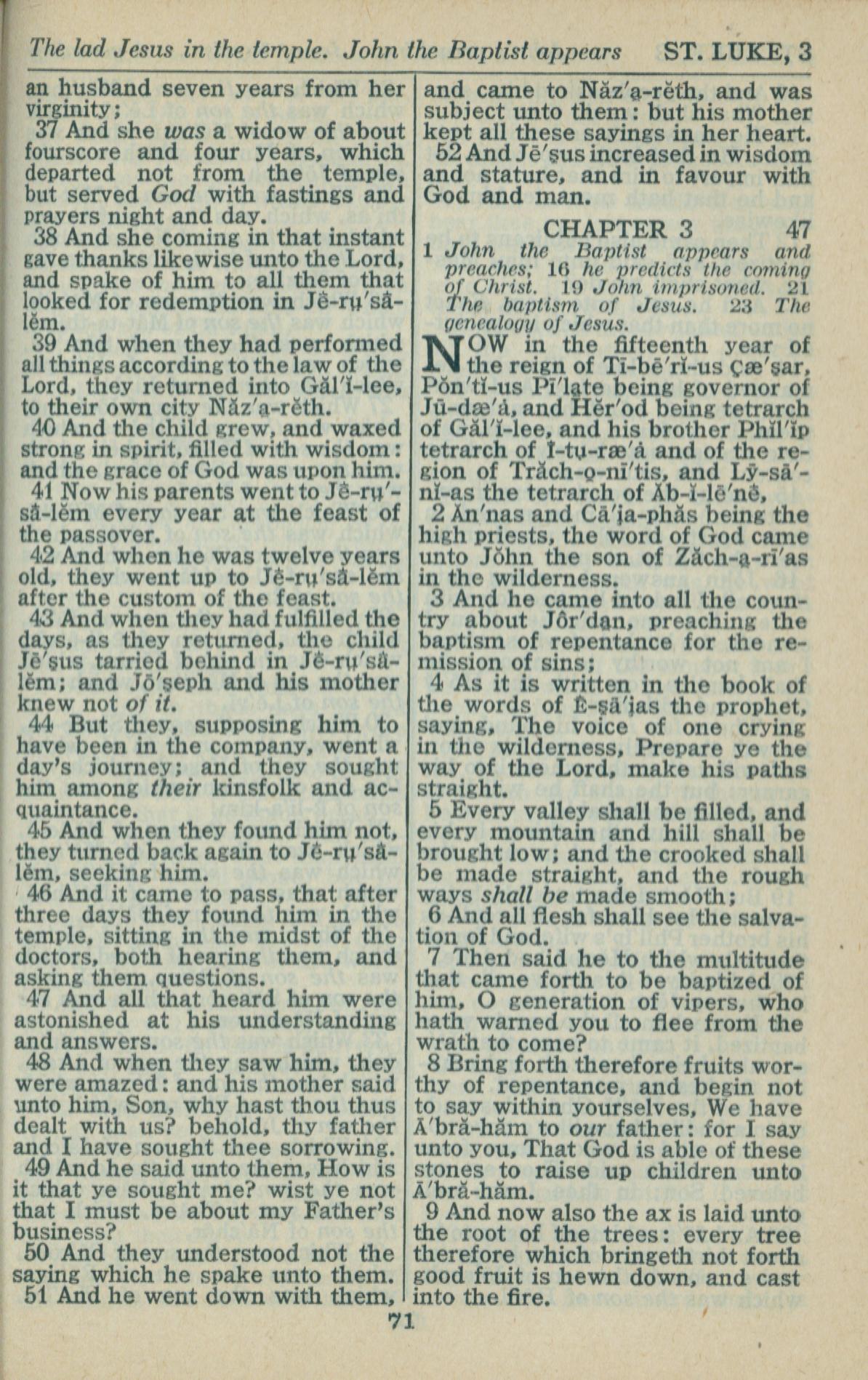 1946年King James Version 路加福音 2 章 37 节到 3 章 9 节