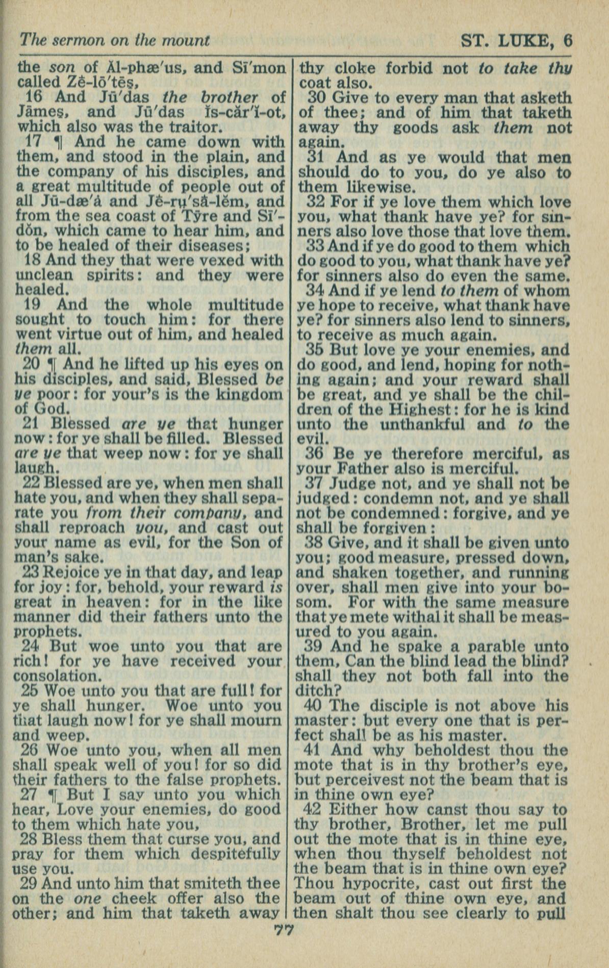 1946年King James Version 路加福音 6 章 16 节到 6 章 42 节