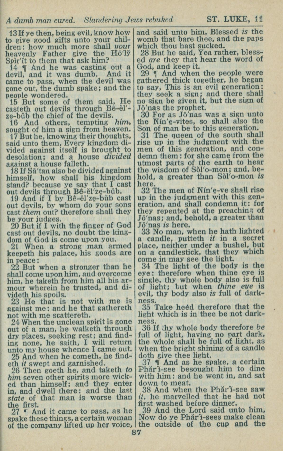 1946年King James Version 路加福音 11 章 13 节到 11 章 39 节