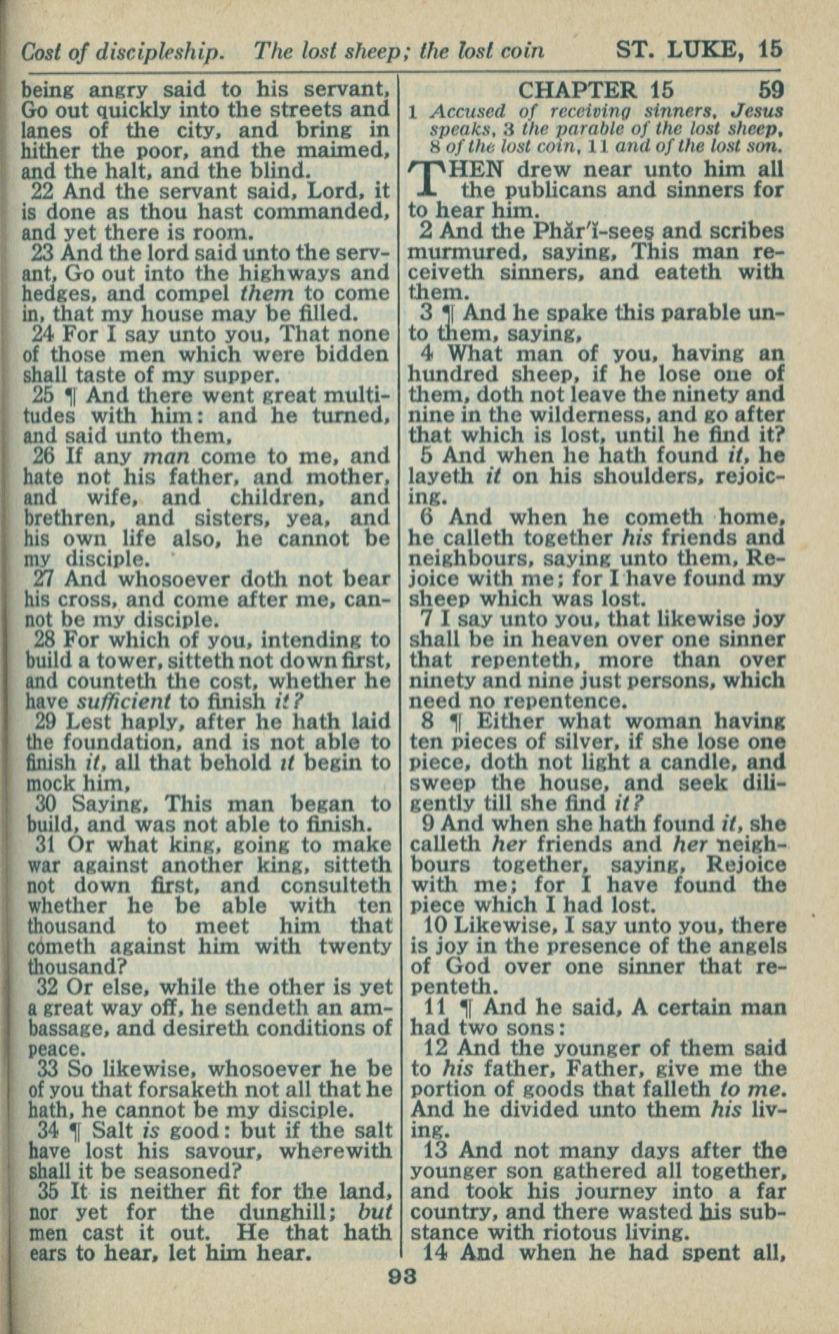 1946年King James Version 路加福音 14 章 22 节到 15 章 14 节