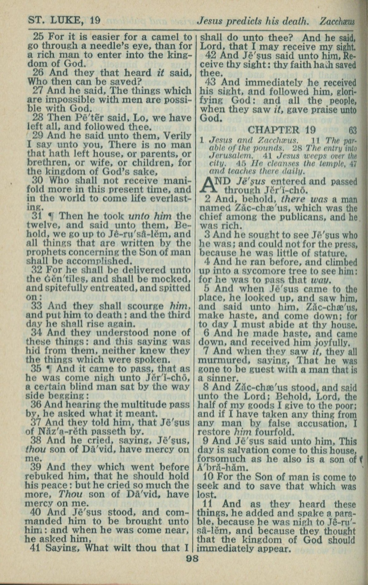 1946年King James Version 路加福音 18 章 25 节到 19 章 11 节