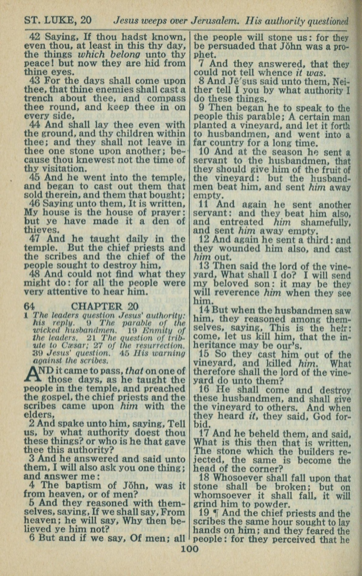 1946年King James Version 路加福音 19 章 42 节到 20 章 19 节