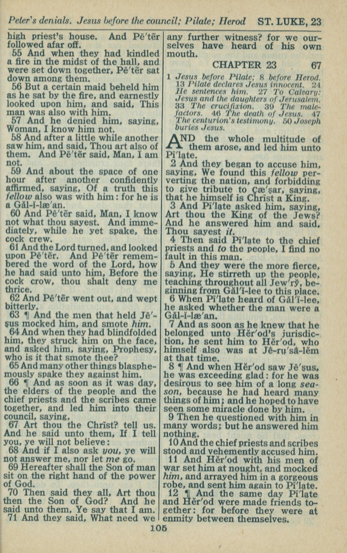 1946年King James Version 路加福音 22 章 55 节到 23 章 12 节