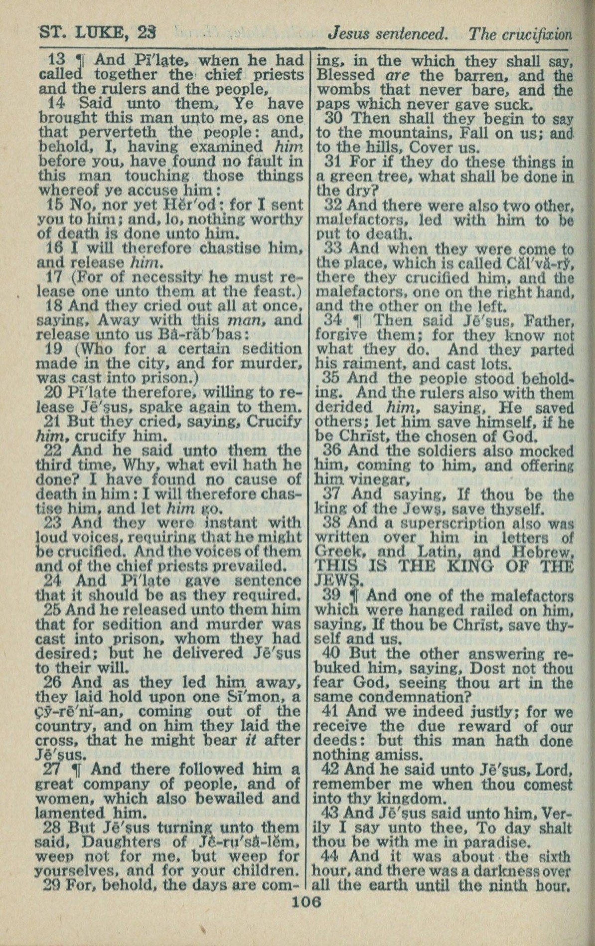 1946年King James Version 路加福音 23 章 13 节到 23 章 44 节