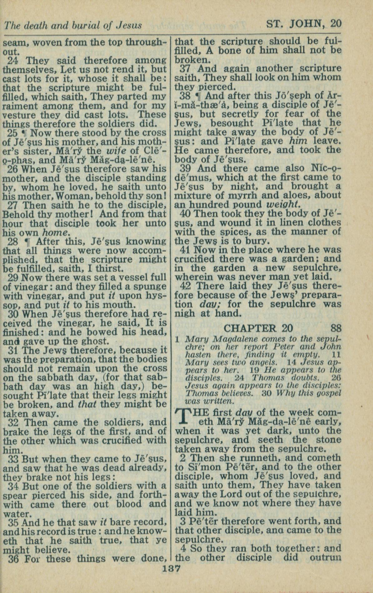 1946年King James Version 约翰福音 19 章 24 节到 20 章 4 节