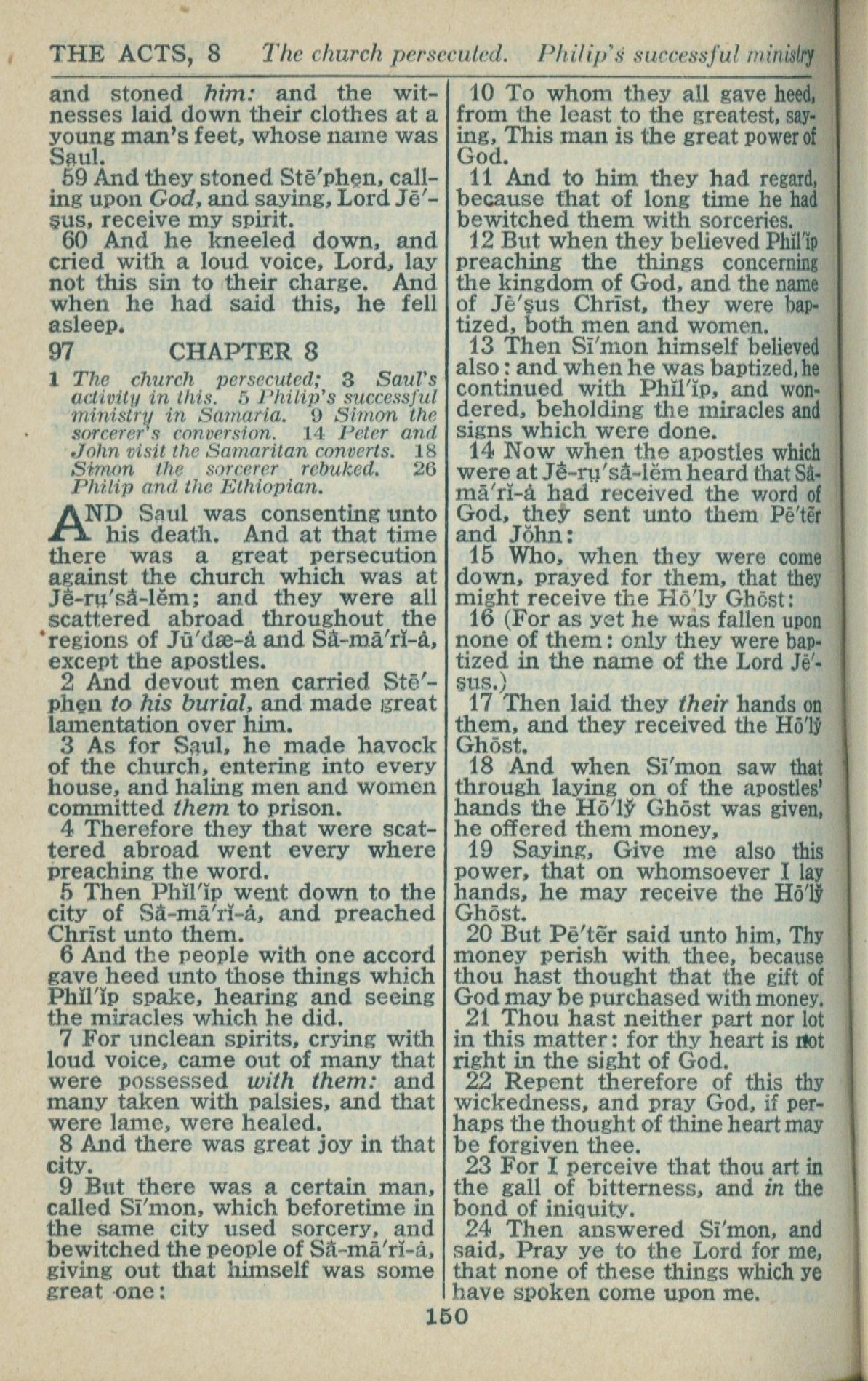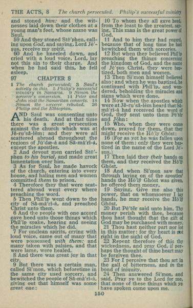 1946年King James Version 使徒行传 7 章 59 节到 8 章 24 节