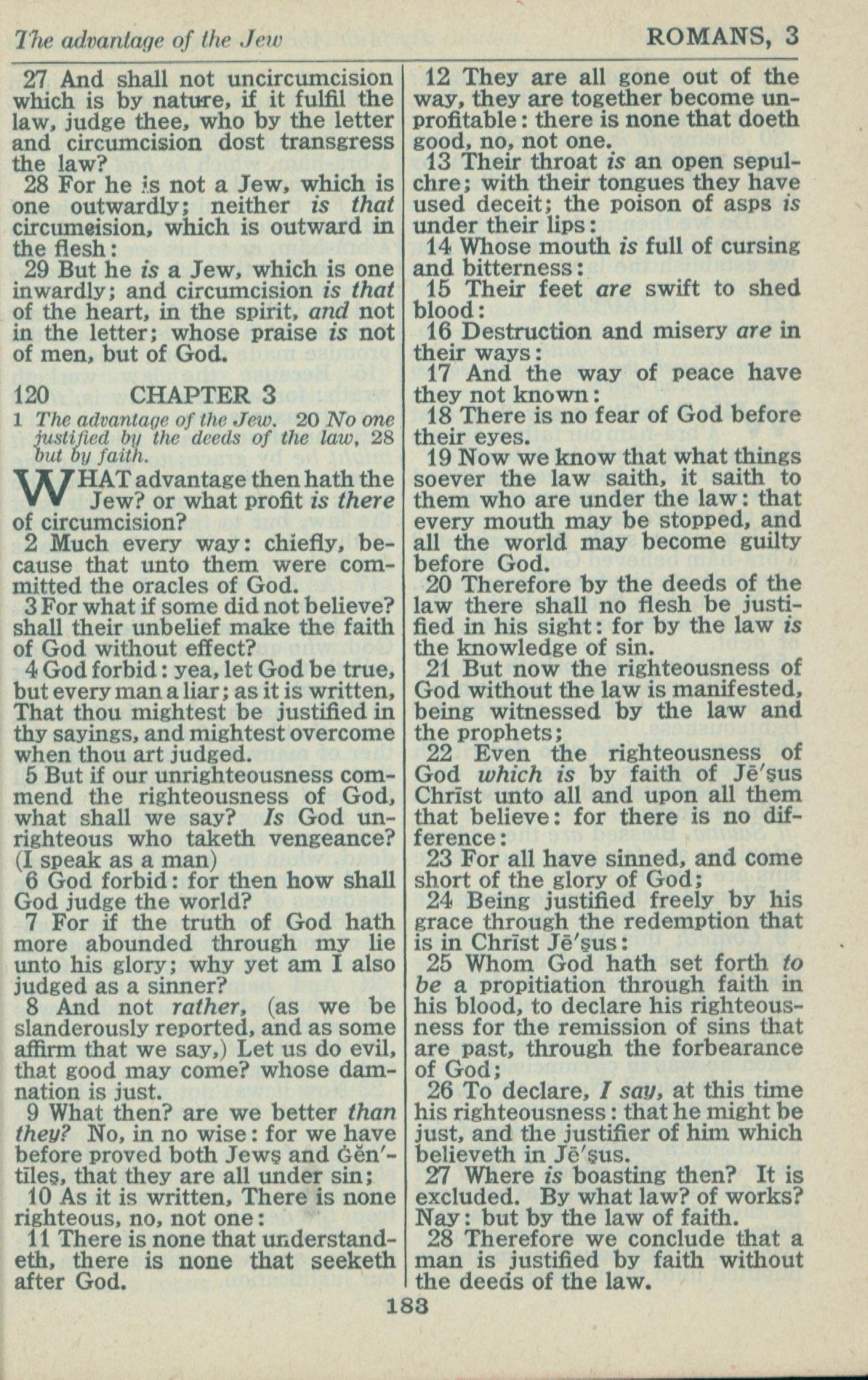1946年King James Version 罗马书 2 章 27 节到 3 章 28 节