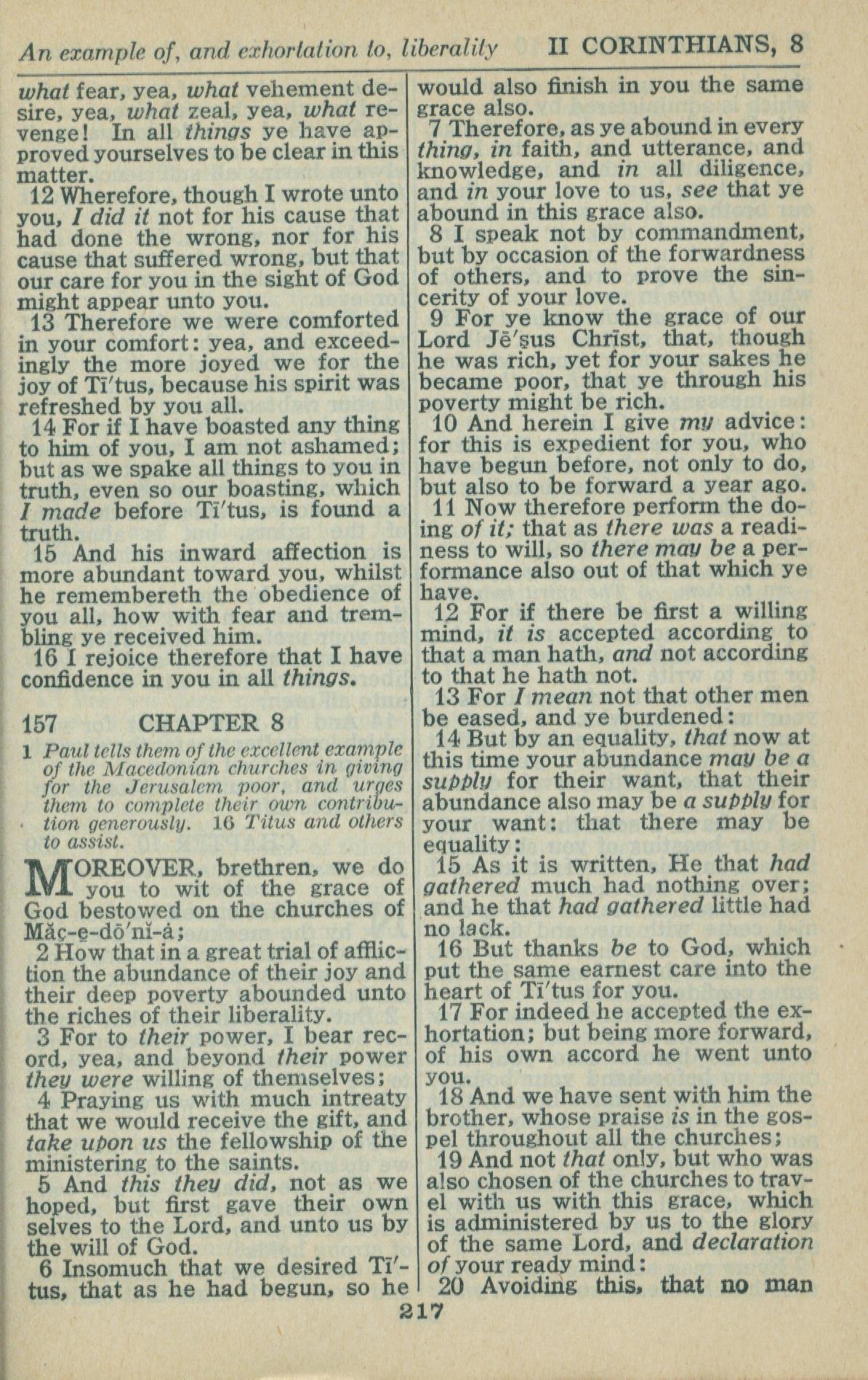 1946年King James Version 哥林多后书 7 章 12 节到 8 章 20 节