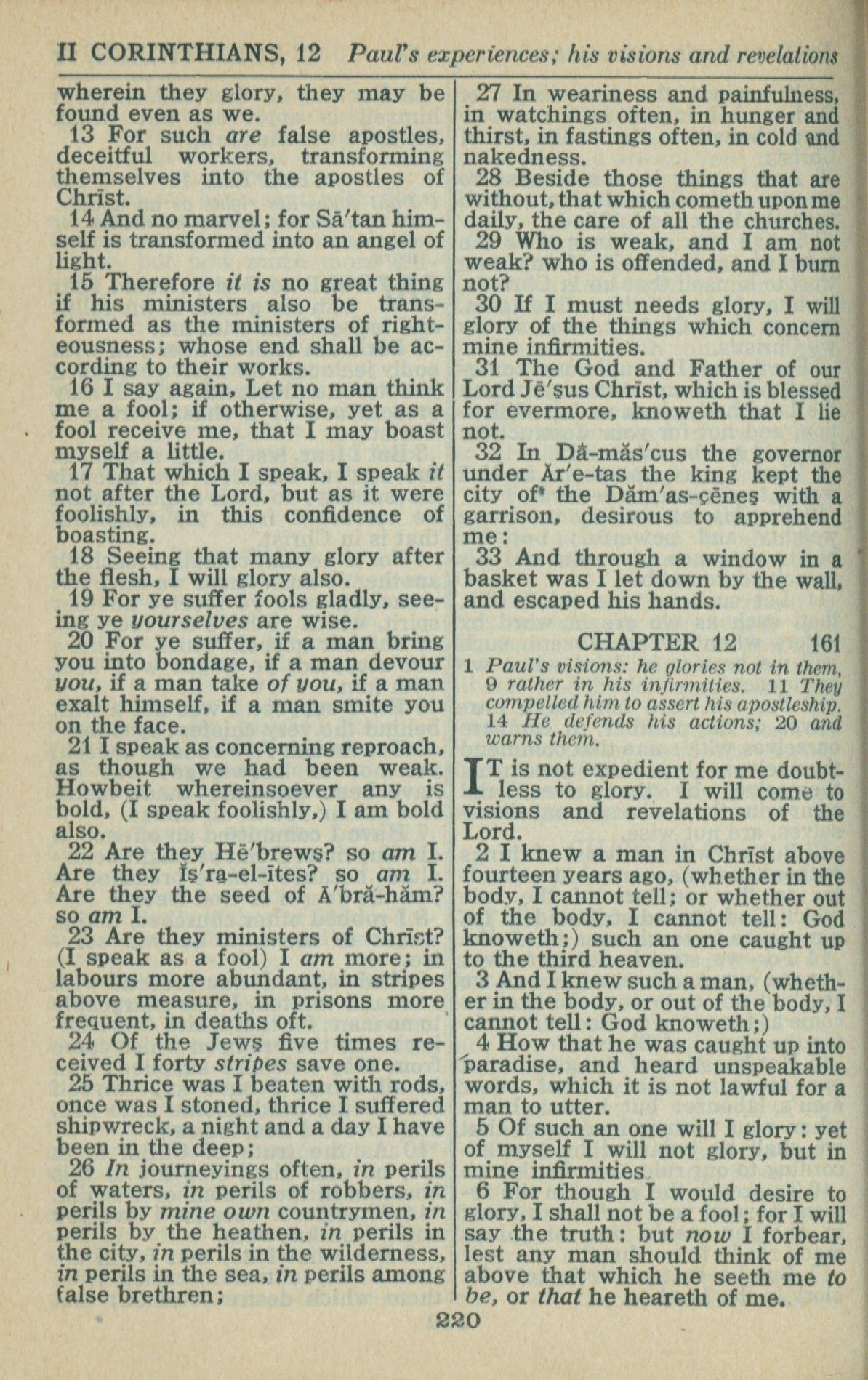 1946年King James Version 哥林多后书 11 章 13 节到 12 章 6 节
