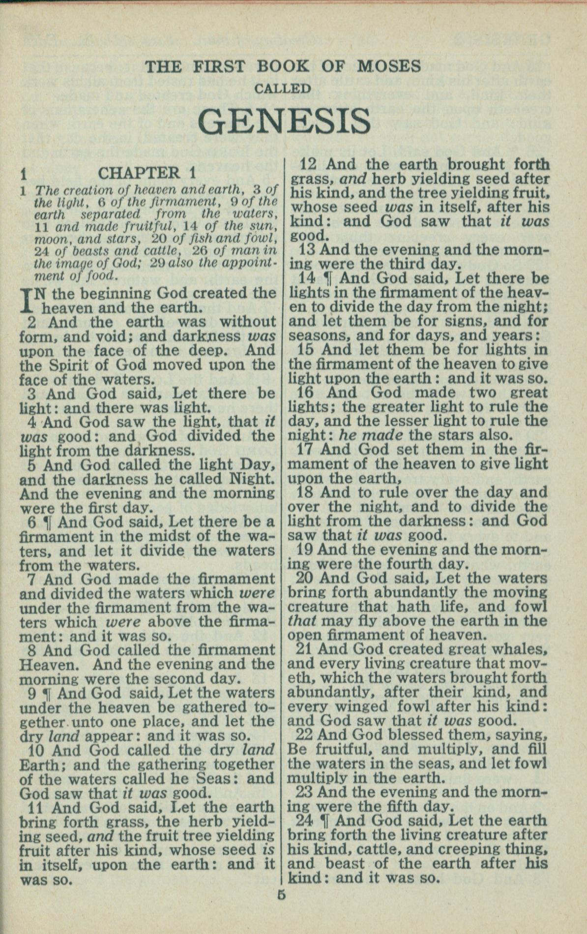 1946年King James Version 创世记 1 章 1 节到 1 章 24 节