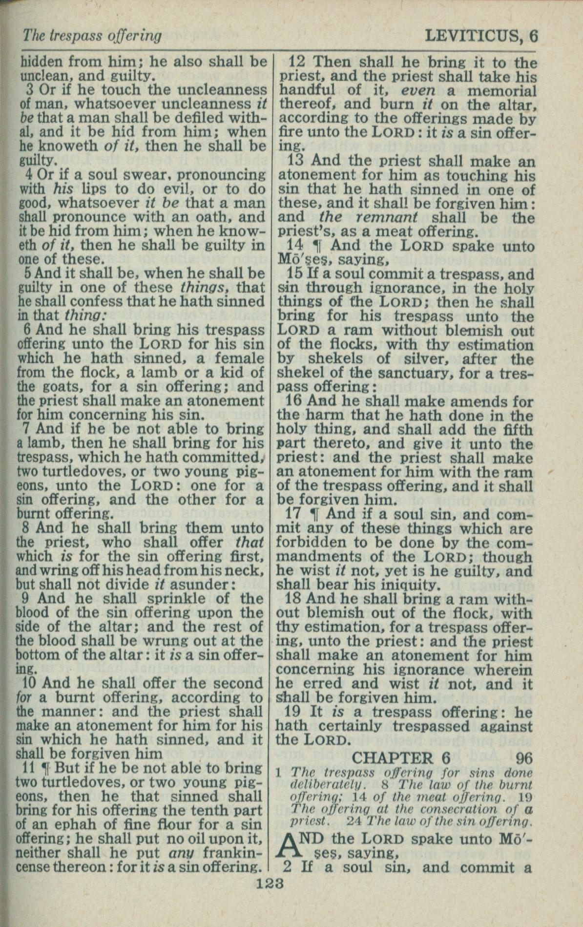 1946年King James Version 利未记 5 章 3 节到 6 章 1 节