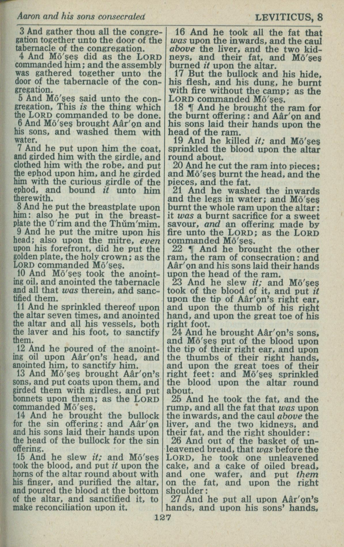 1946年King James Version 利未记 8 章 3 节到 8 章 27 节