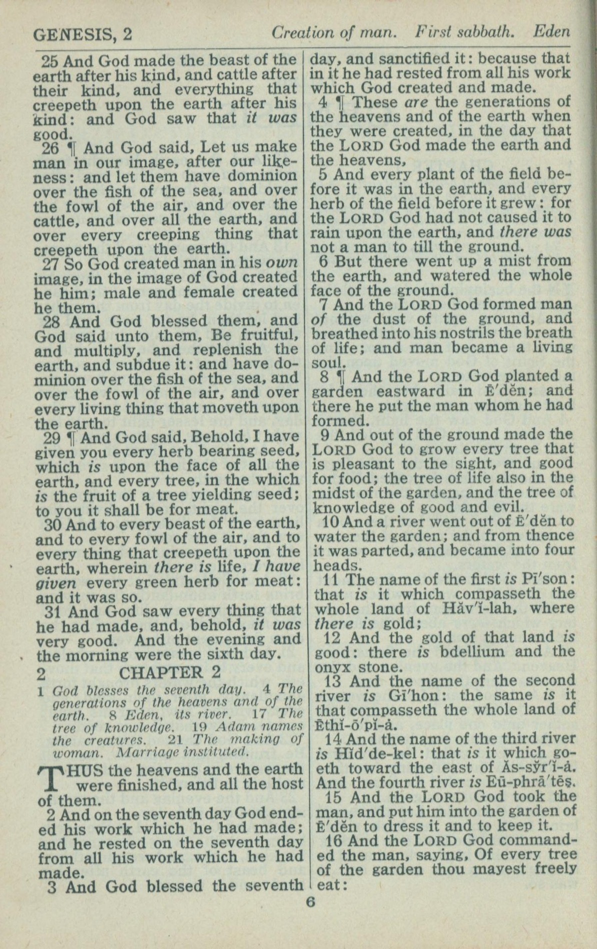 1946年King James Version 创世记 1 章 25 节到 2 章 16 节