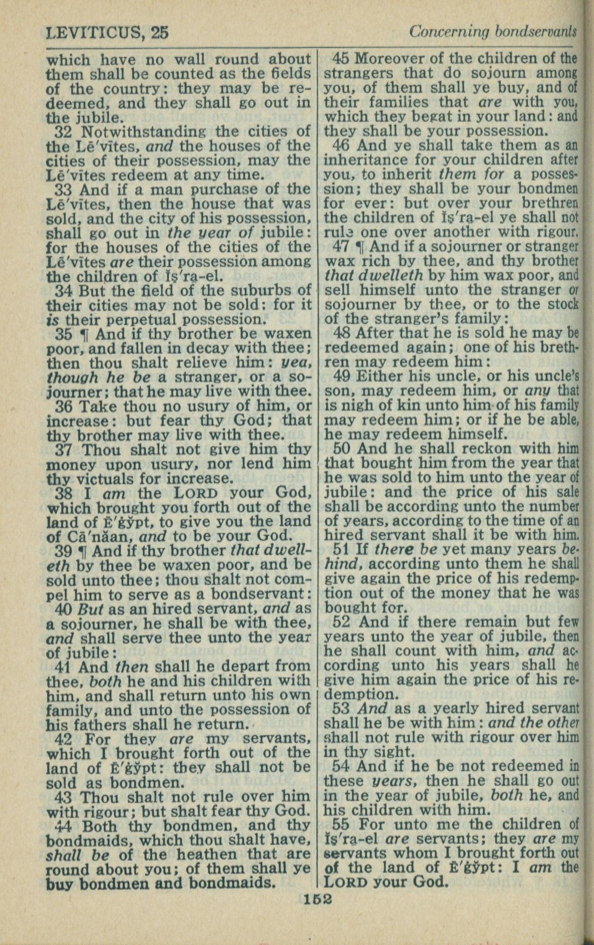 1946年King James Version 利未记 25 章 32 节到 25 章 55 节