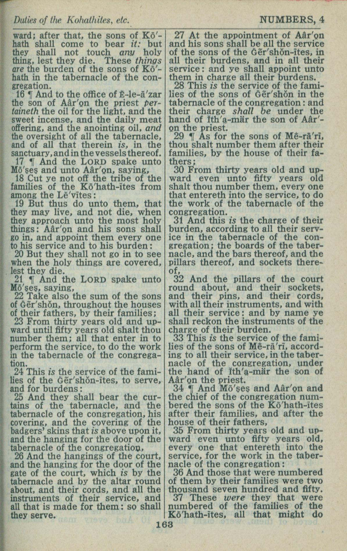 1946年King James Version 民数记 4 章 16 节到 4 章 37 节