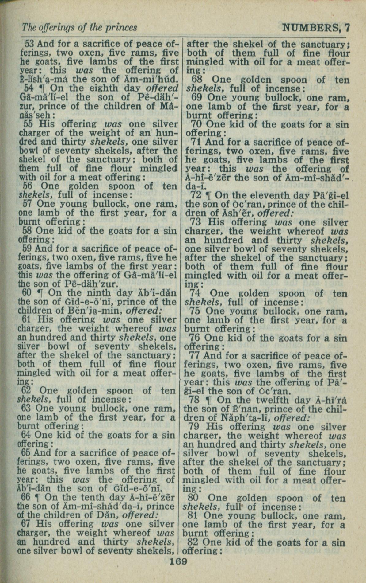 1946年King James Version 民数记 7 章 53 节到 7 章 82 节
