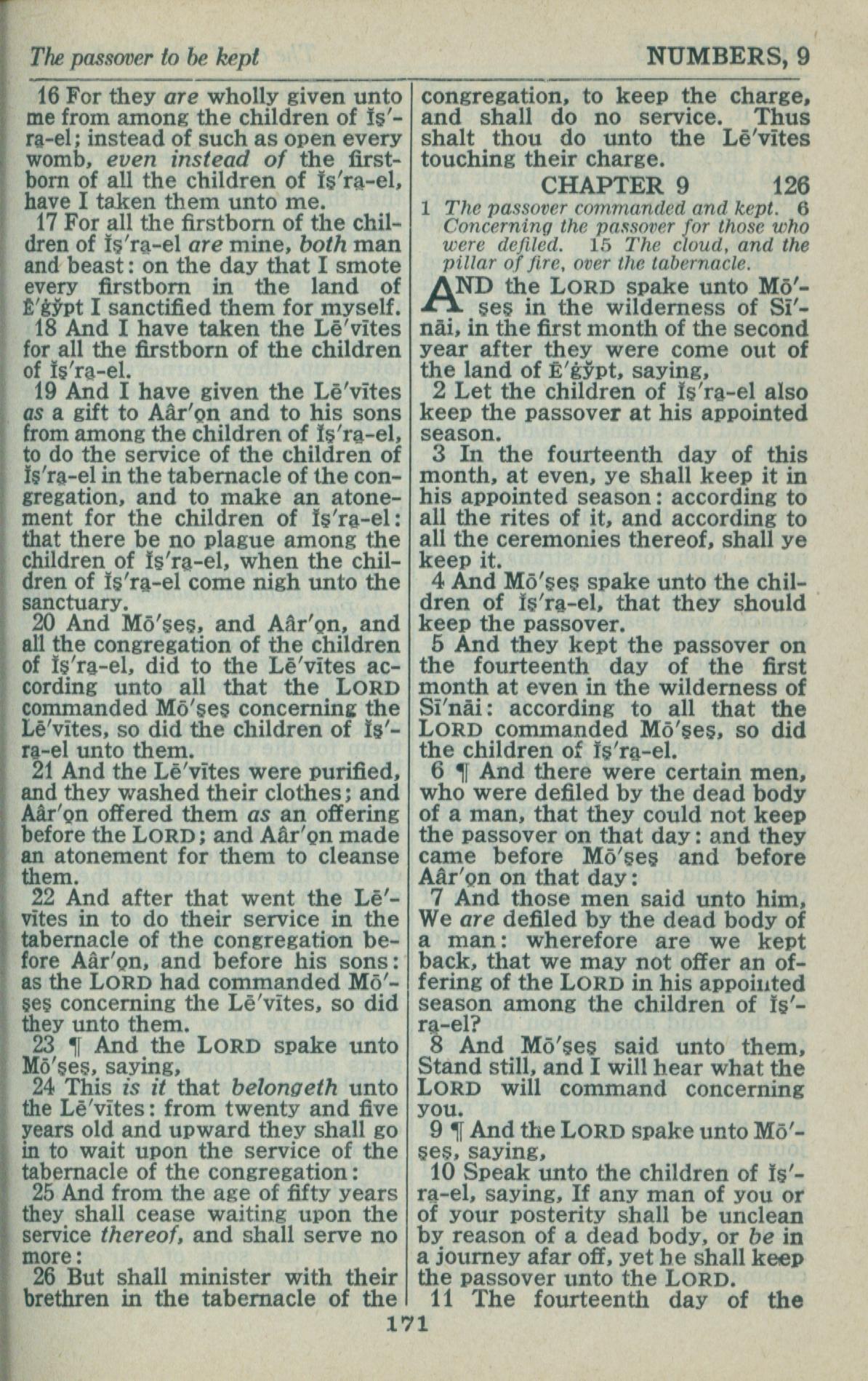 1946年King James Version 民数记 8 章 16 节到 9 章 11 节