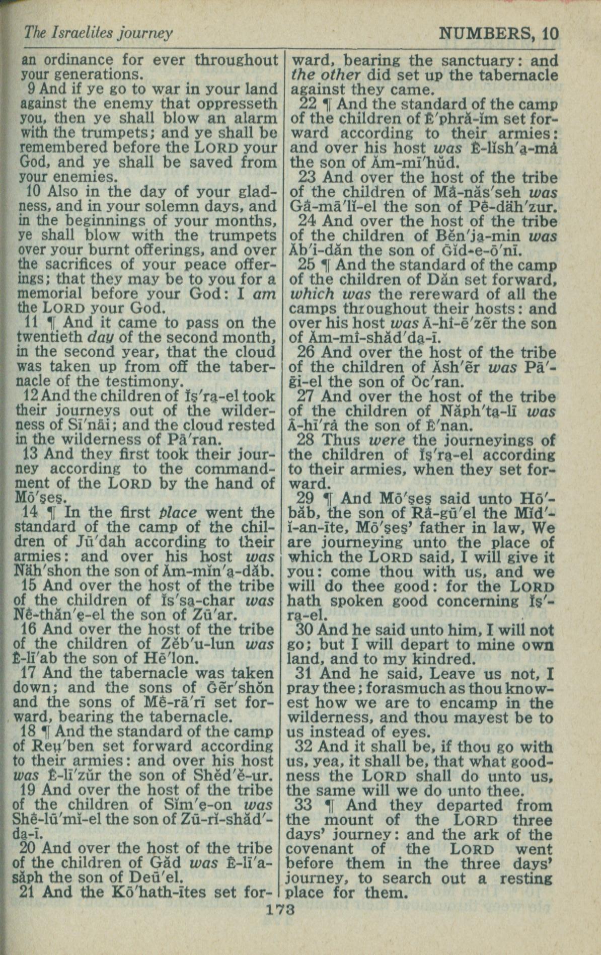 1946年King James Version 民数记 10 章 9 节到 10 章 33 节