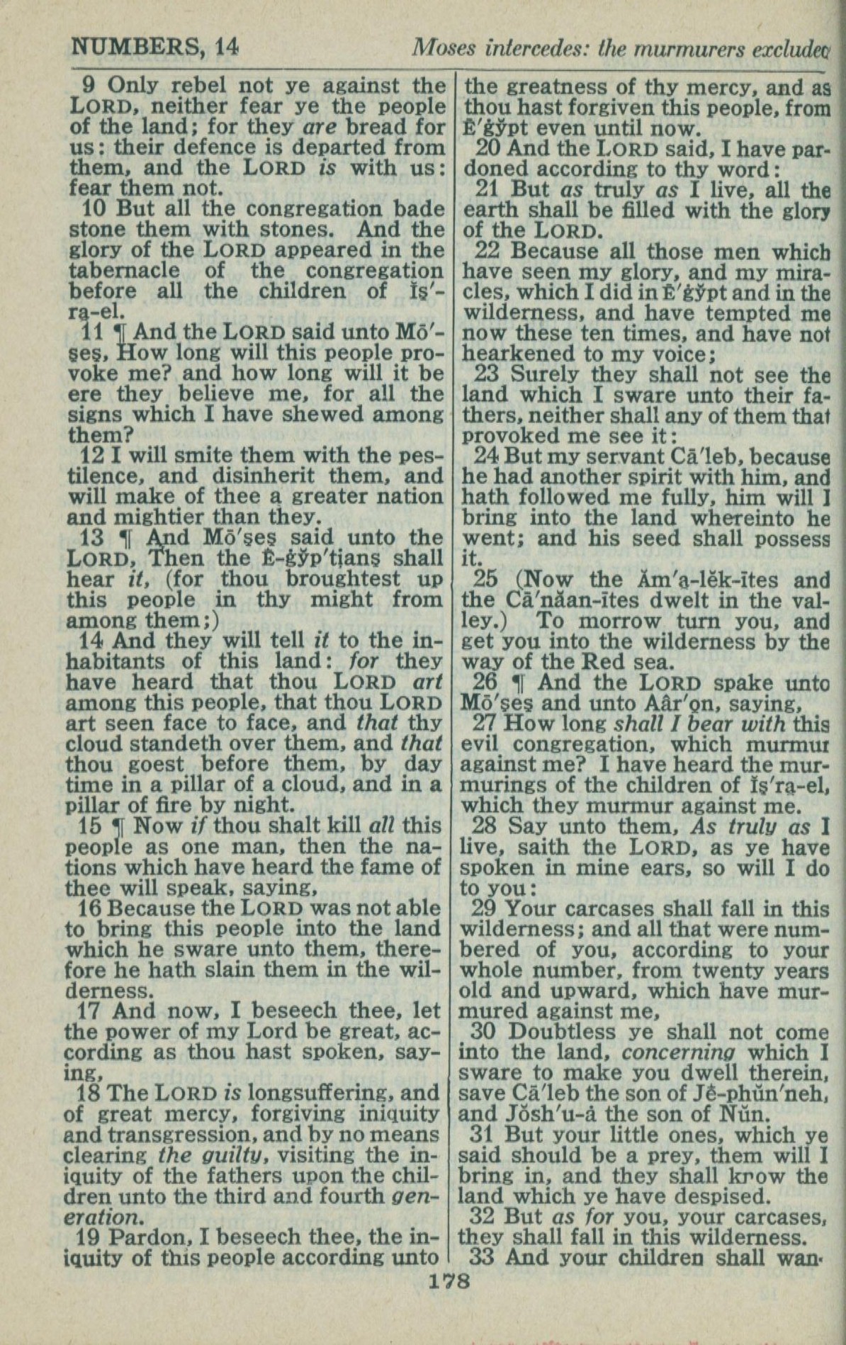 1946年King James Version 民数记 14 章 9 节到 14 章 33 节