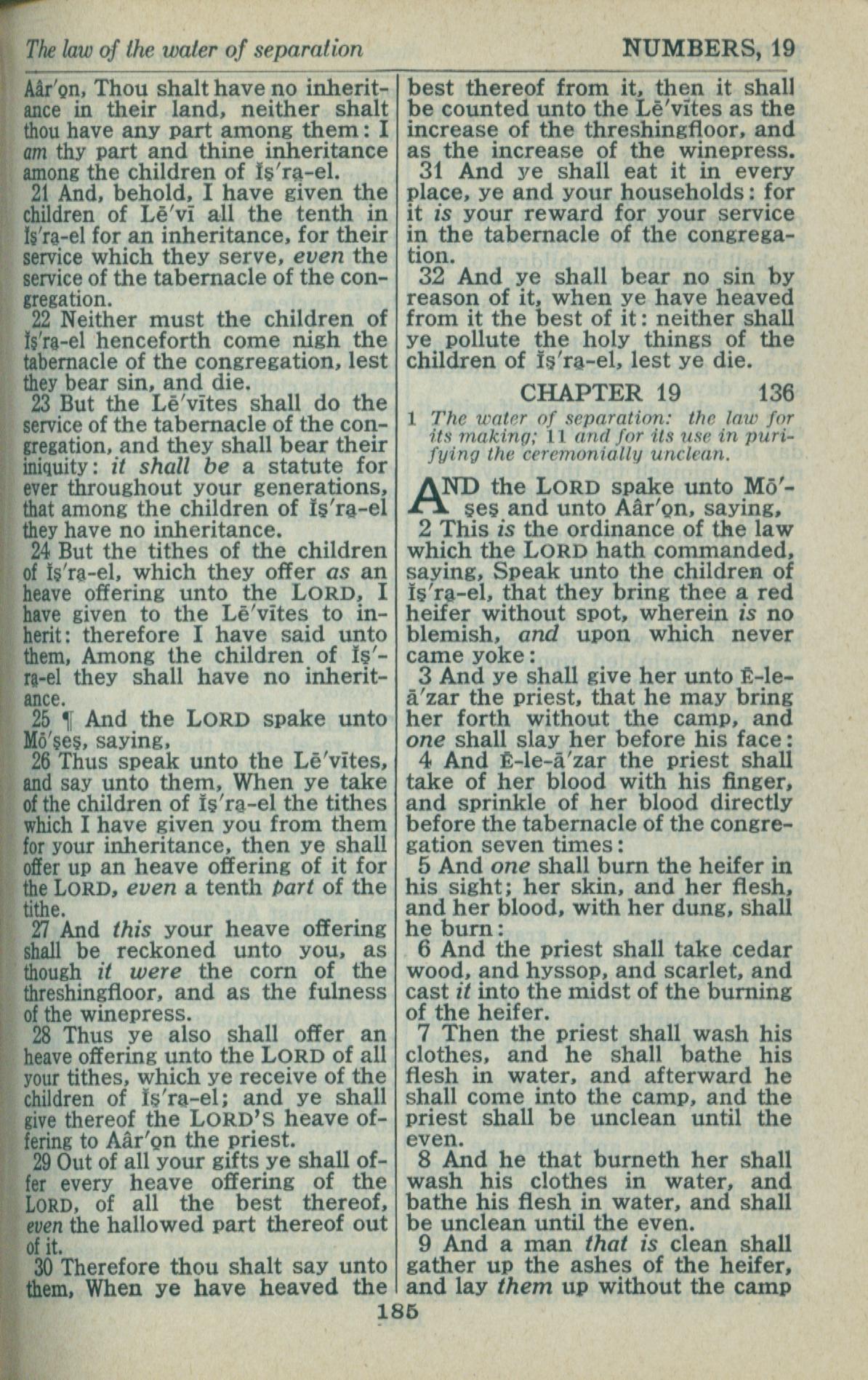 1946年King James Version 民数记 18 章 20 节到 19 章 9 节
