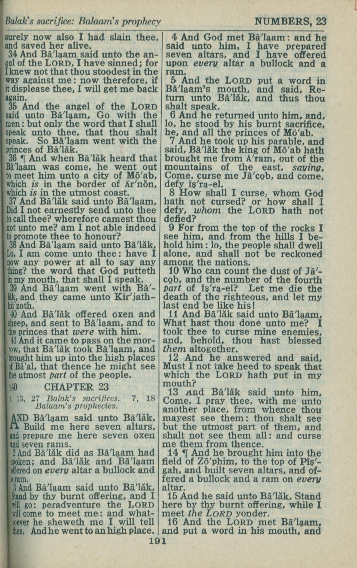1946年King James Version 民数记 22 章 34 节到 23 章 16 节