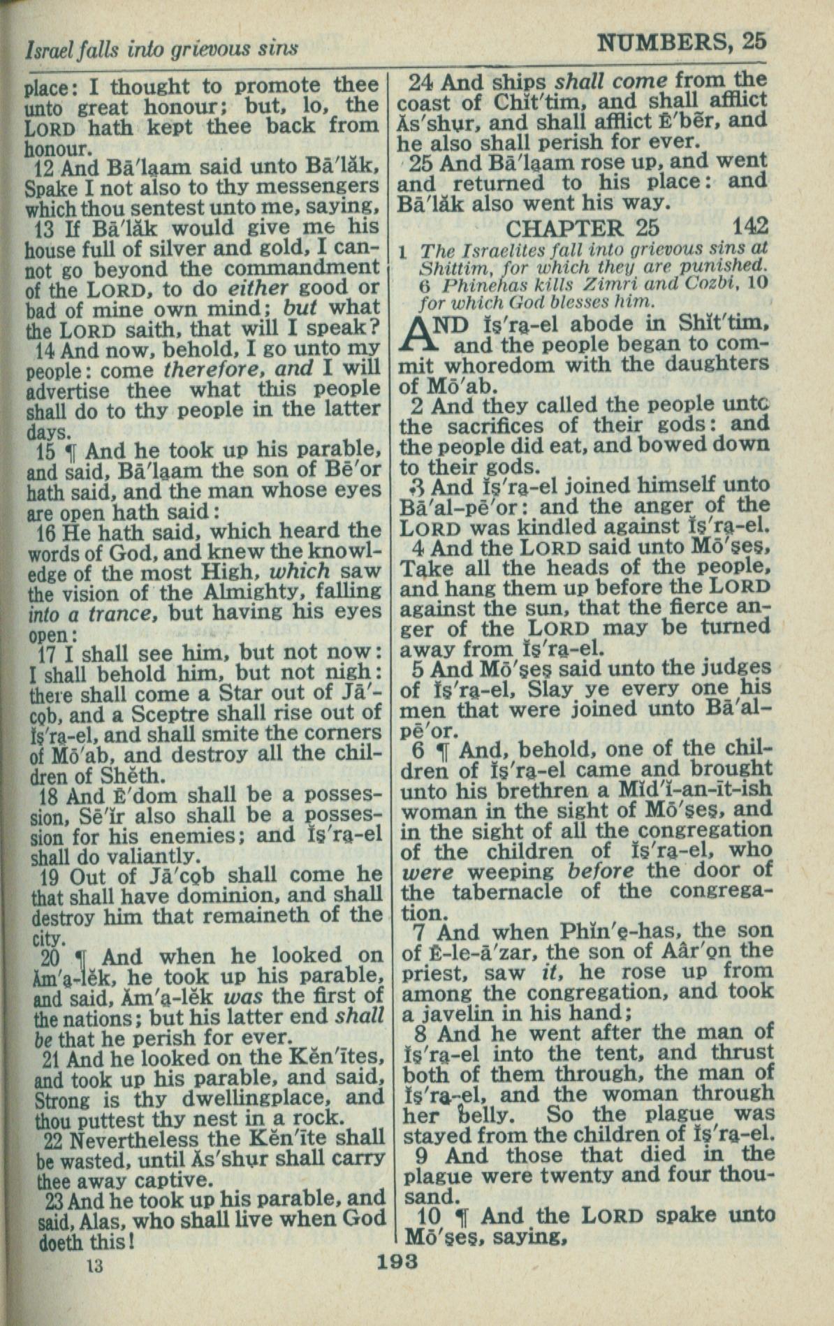 1946年King James Version 民数记 24 章 12 节到 25 章 10 节