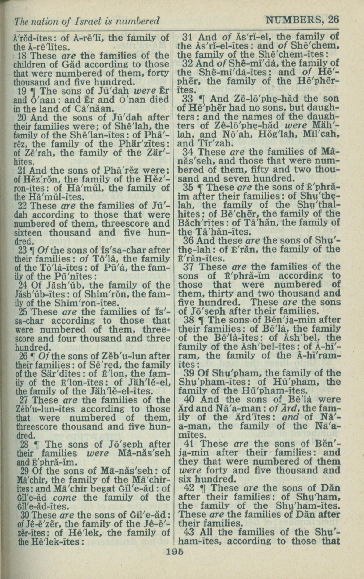 1946年King James Version 民数记 26 章 18 节到 26 章 43 节