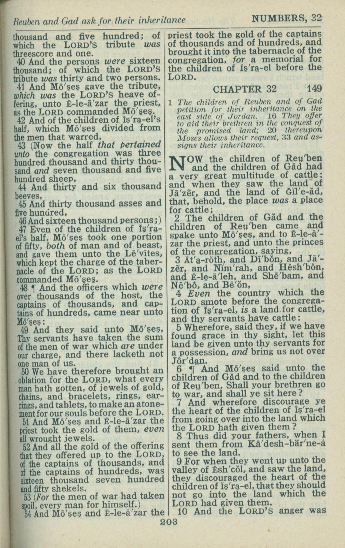 1946年King James Version 民数记 31 章 40 节到 32 章 10 节