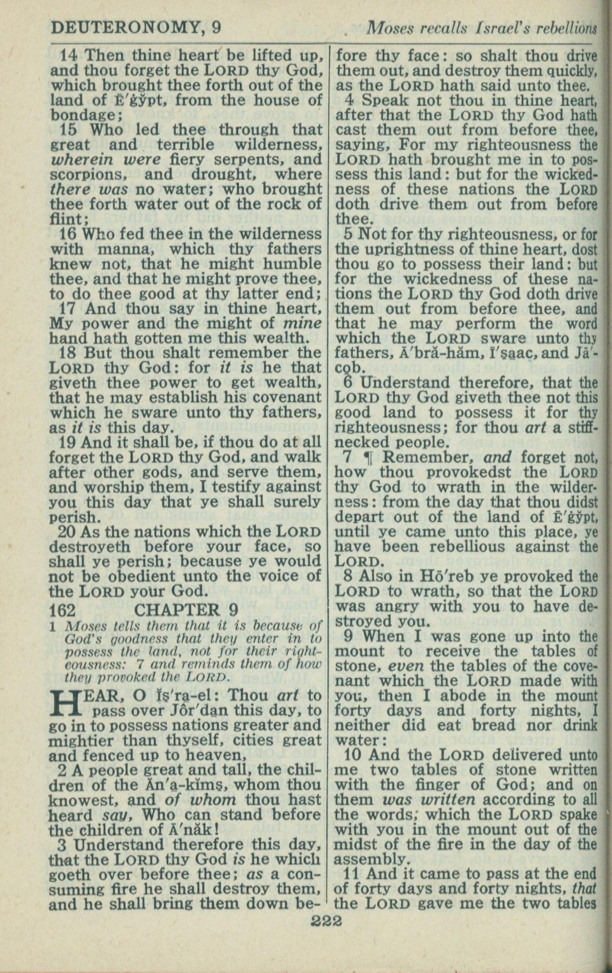 1946年King James Version 申命记 8 章 14 节到 9 章 11 节