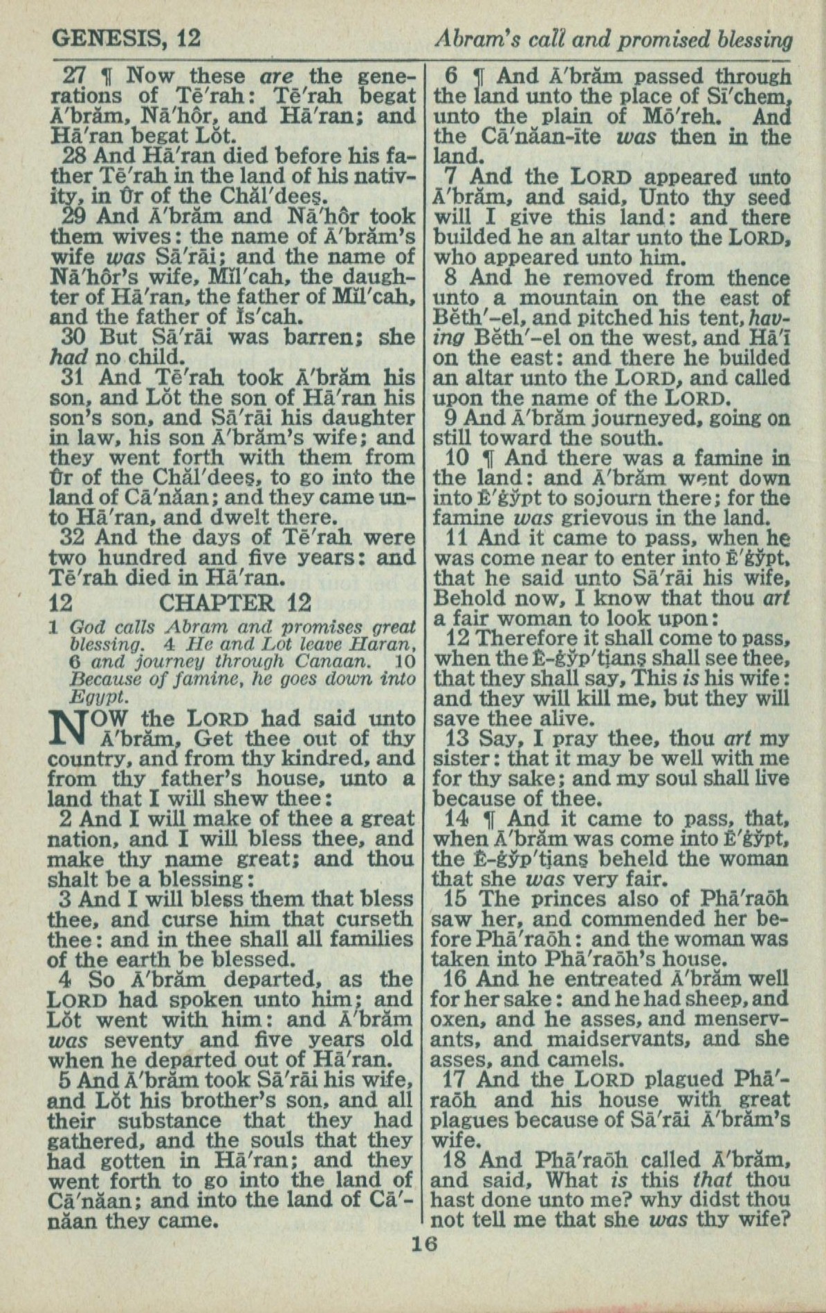 1946年King James Version 创世记 11 章 27 节到 12 章 18 节