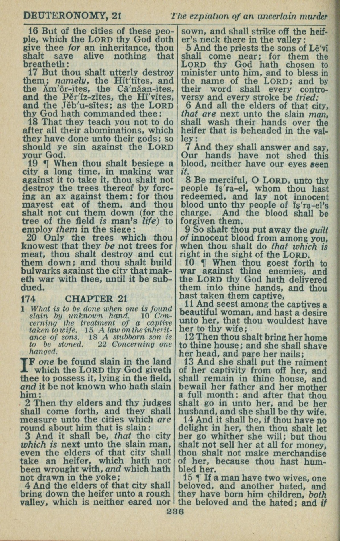 1946年King James Version 申命记 20 章 16 节到 21 章 15 节