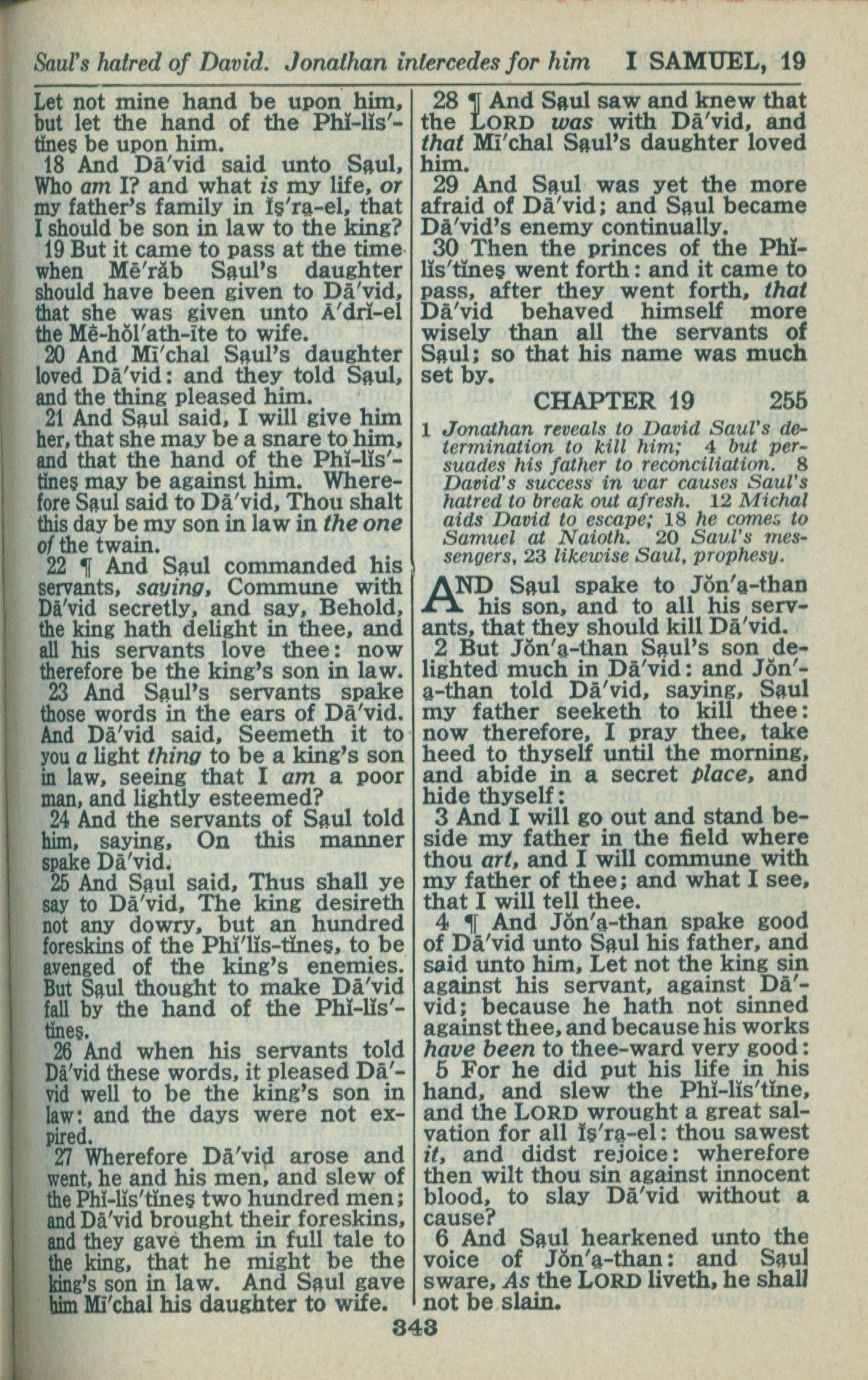 1946年King James Version 撒母耳记上 18 章 18 节到 19 章 6 节