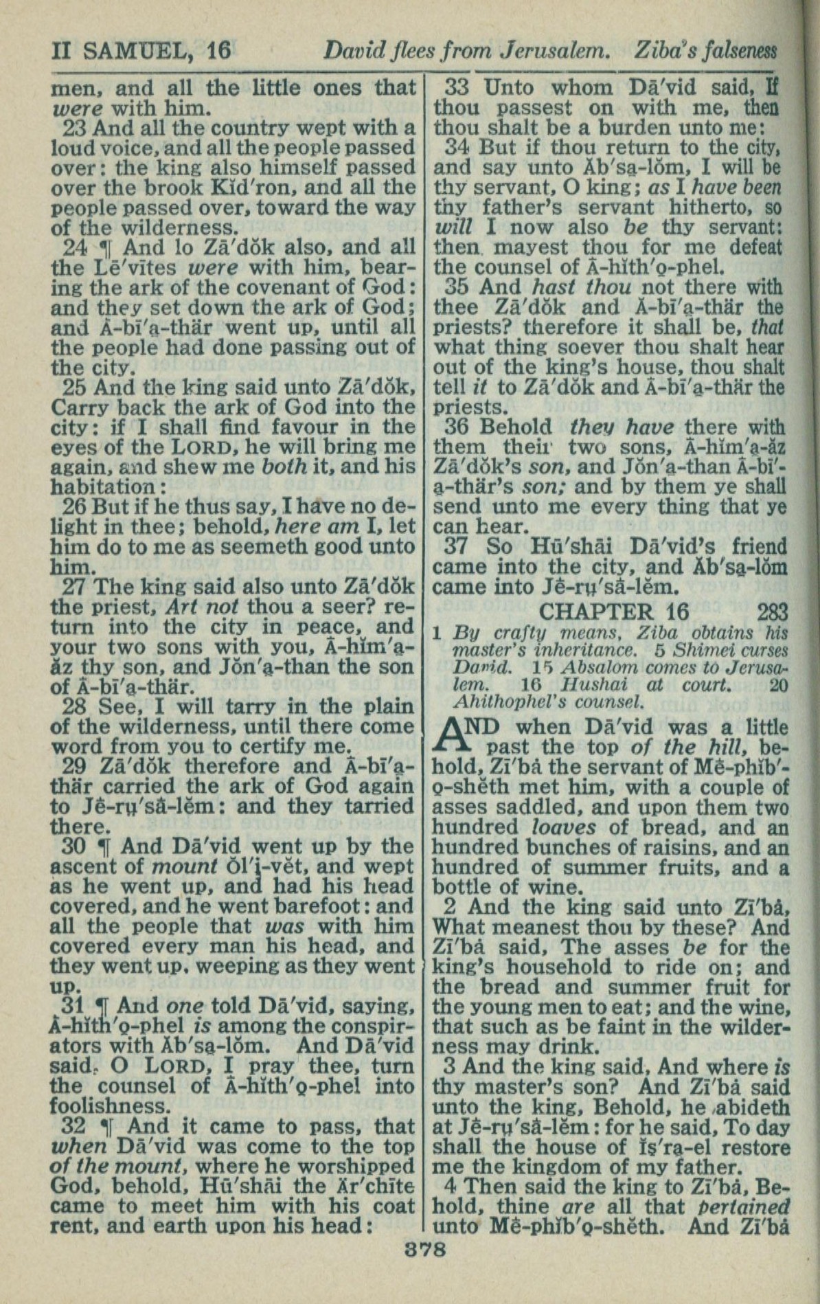 1946年King James Version 撒母耳记下 15 章 23 节到 16 章 4 节