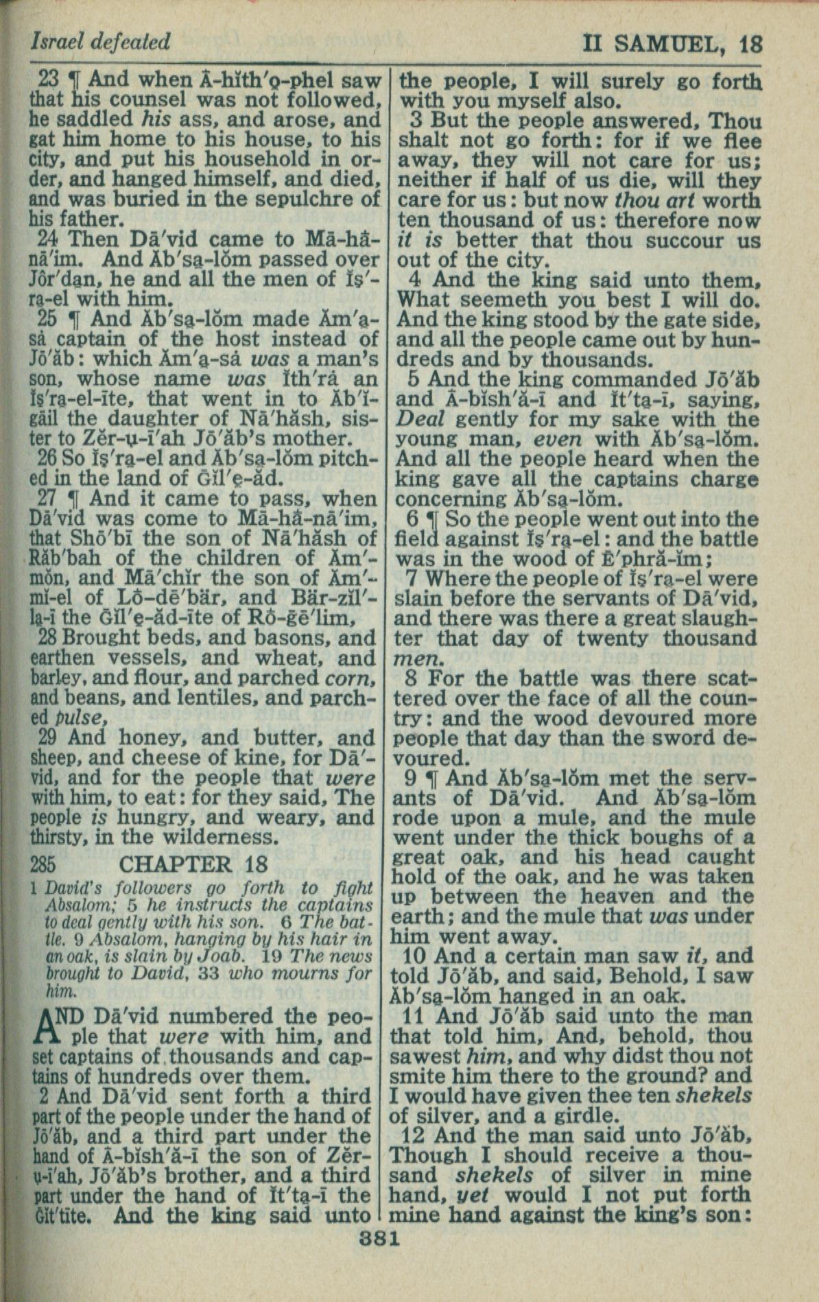 1946年King James Version 撒母耳记下 17 章 23 节到 18 章 12 节