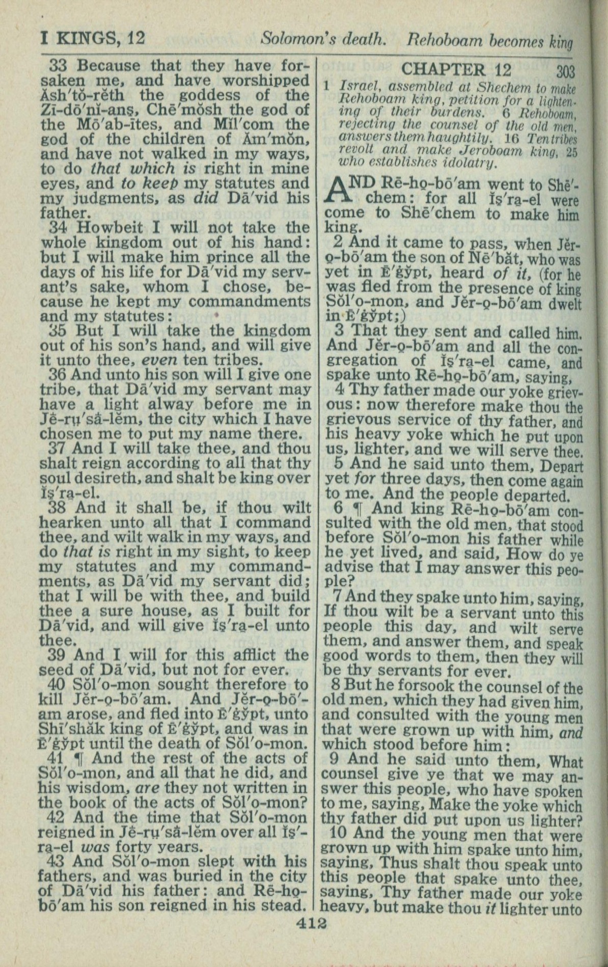 1946年King James Version 列王纪上 11 章 33 节到 12 章 10 节