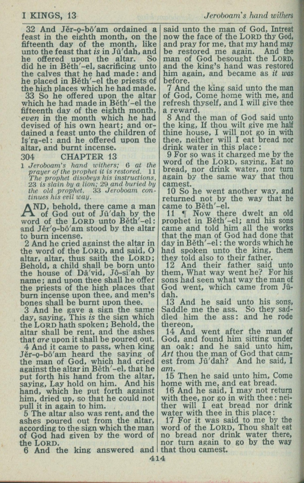 1946年King James Version 列王纪上 12 章 32 节到 13 章 17 节