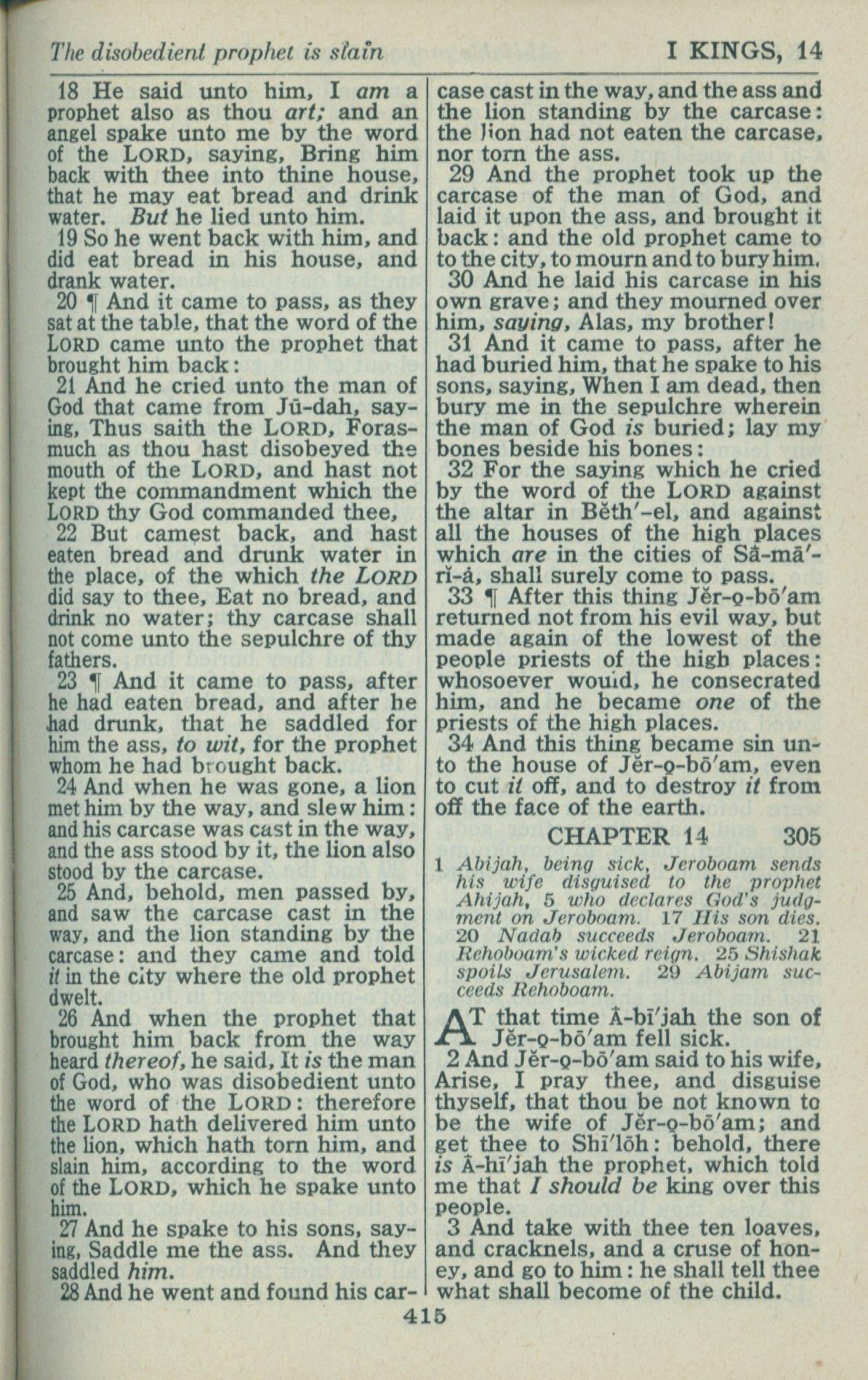 1946年King James Version 列王纪上 13 章 18 节到 14 章 3 节