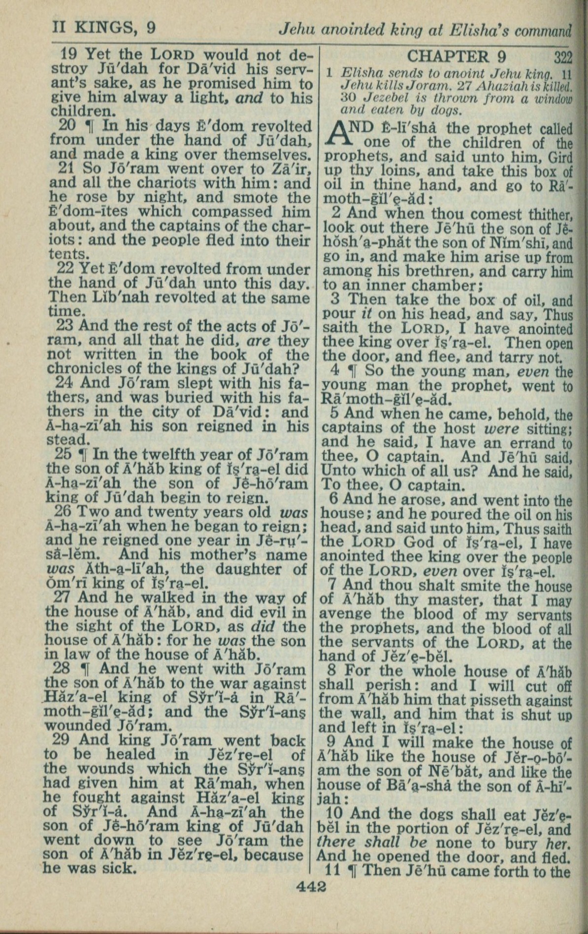 1946年King James Version 列王纪下 8 章 19 节到 9 章 11 节