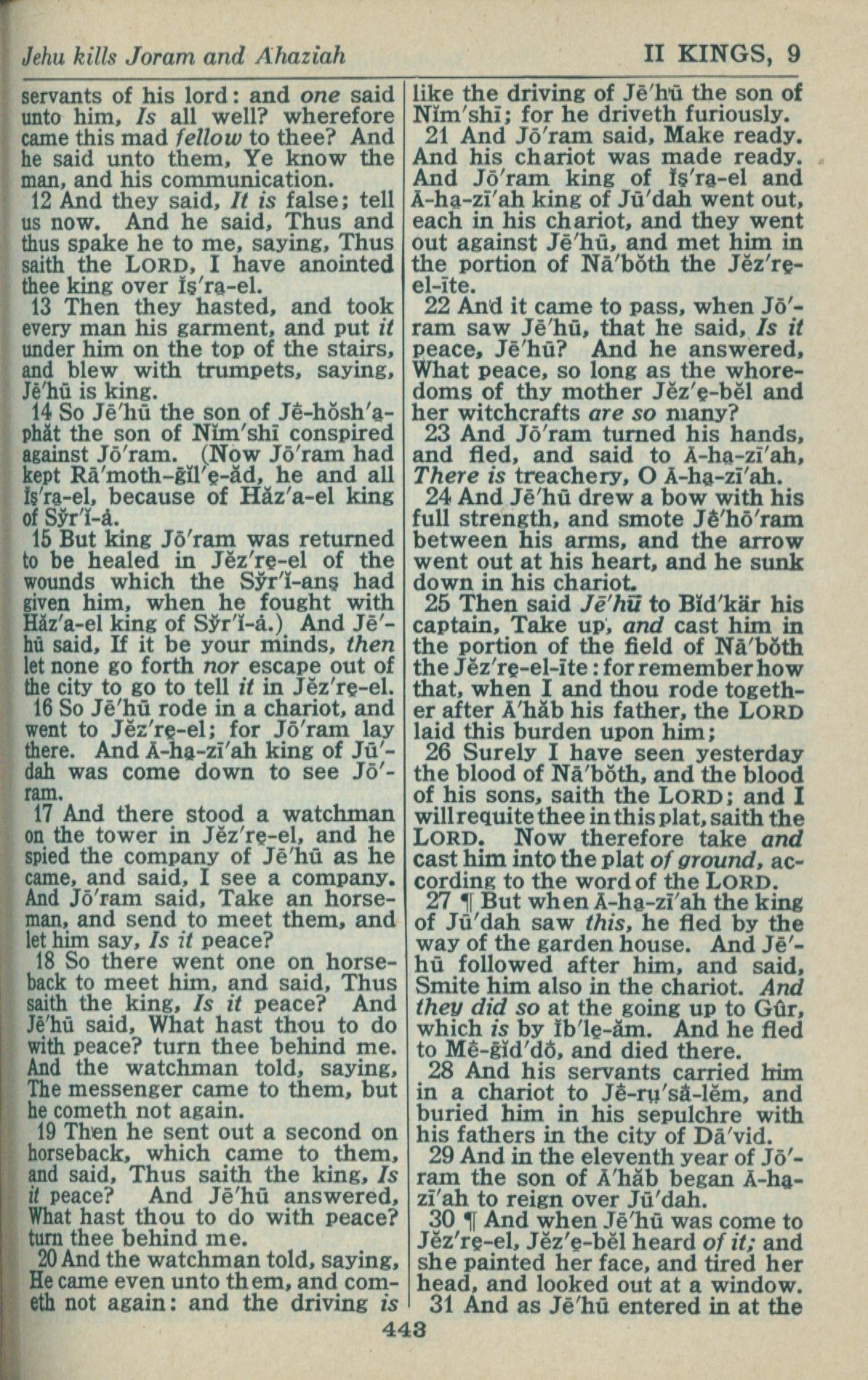 1946年King James Version 列王纪下 9 章 12 节到 9 章 31 节