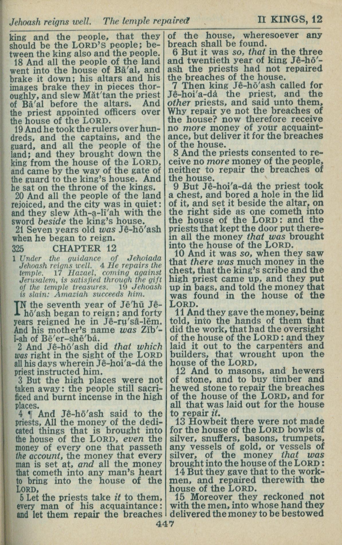 1946年King James Version 列王纪下 11 章 18 节到 12 章 15 节